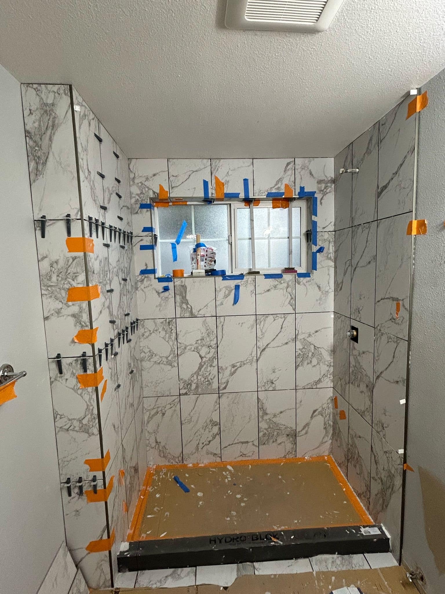 - Floor-to-Ceiling Tile: Large-format neutral-toned tiles line the shower and bathroom floor, creating a cohesive, low-maintenance finish.
