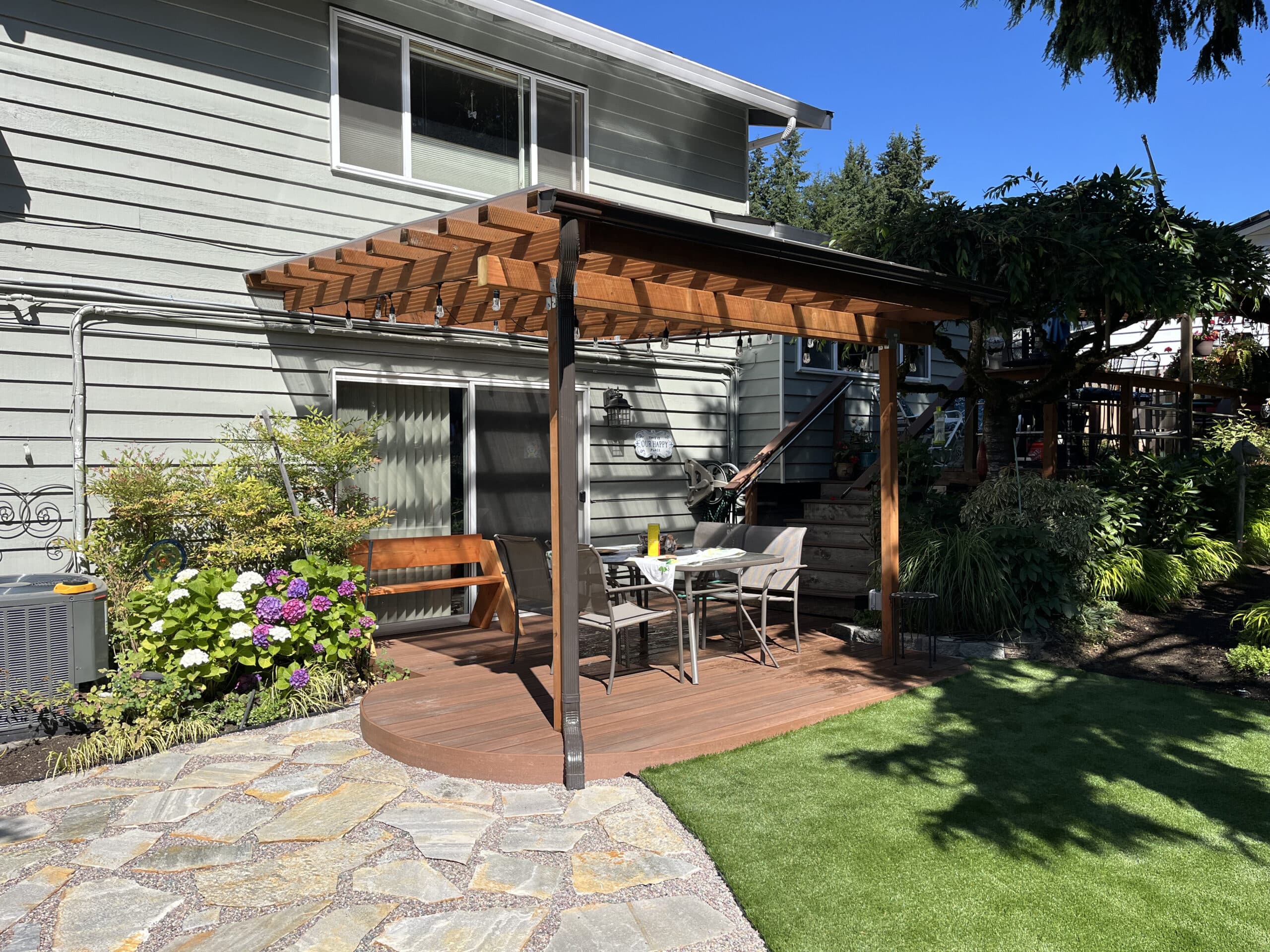 Our integrated approach ensures a unified high-quality result. We utilized durable, weather-resistant materials and robust construction techniques to craft an outdoor space that is low-maintenance, aesthetically pleasing, and designed for enjoying years of use through every Pacific Northwest season. This deck is ready to serve as the new focal point for relaxation and entertaining.
